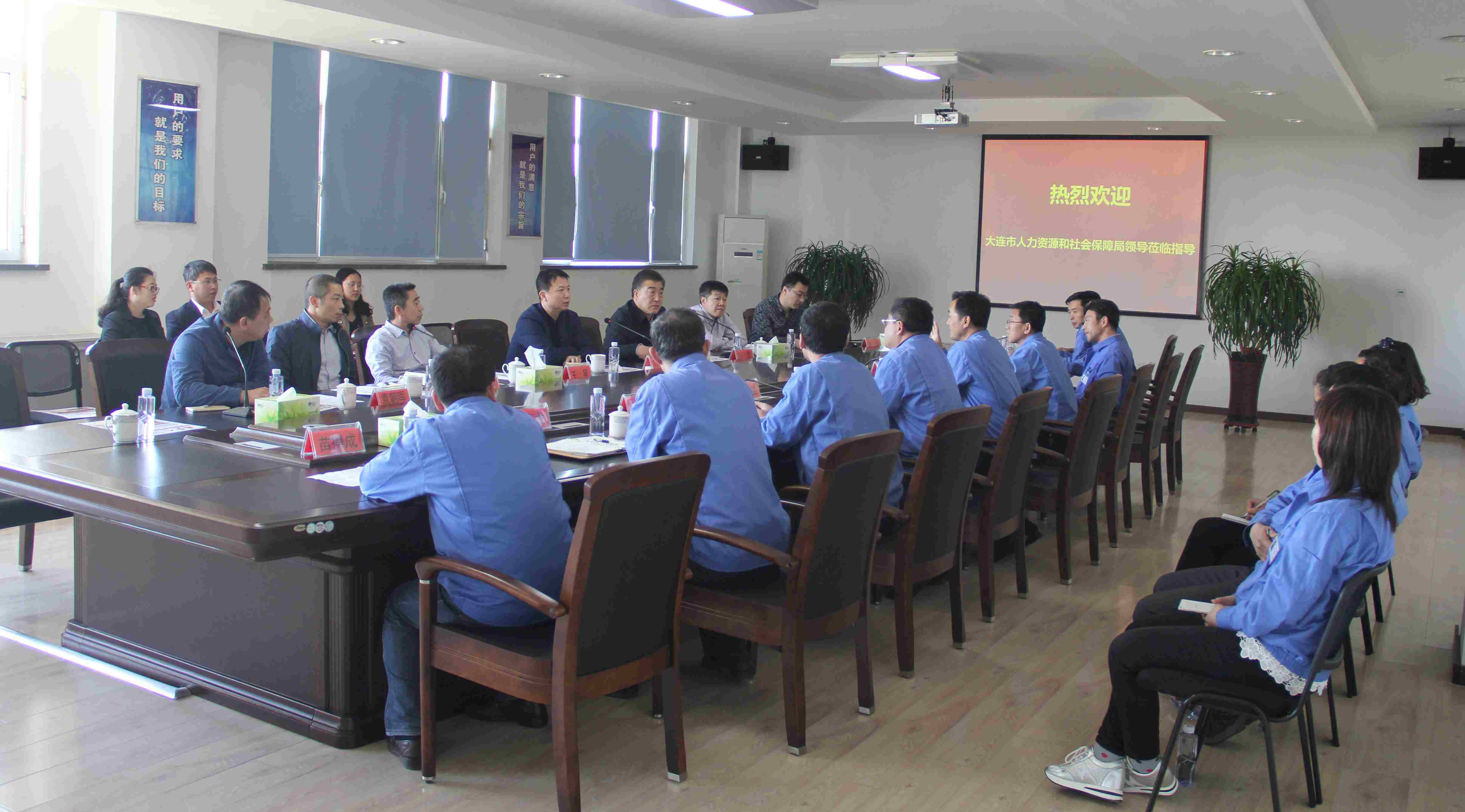 2016年4月28日大連市人力資源和社會保障局孫長久副局長帶隊一行14人到绿巨人污视频走訪調研,長興島勞人局…